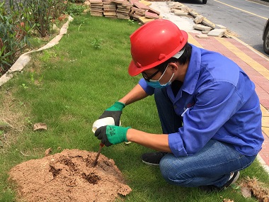 在地基开挖后,先清理现场的树根、杂草、旧木材等杂物(这些都是白蚁的“食物来源”),西樵白蚁预防公司再用专业白蚁防治药剂喷洒土壤,重点喷洒地基周边、墙体基槽和管道周边,形成“防护屏障”,阻止白蚁从土壤入侵。